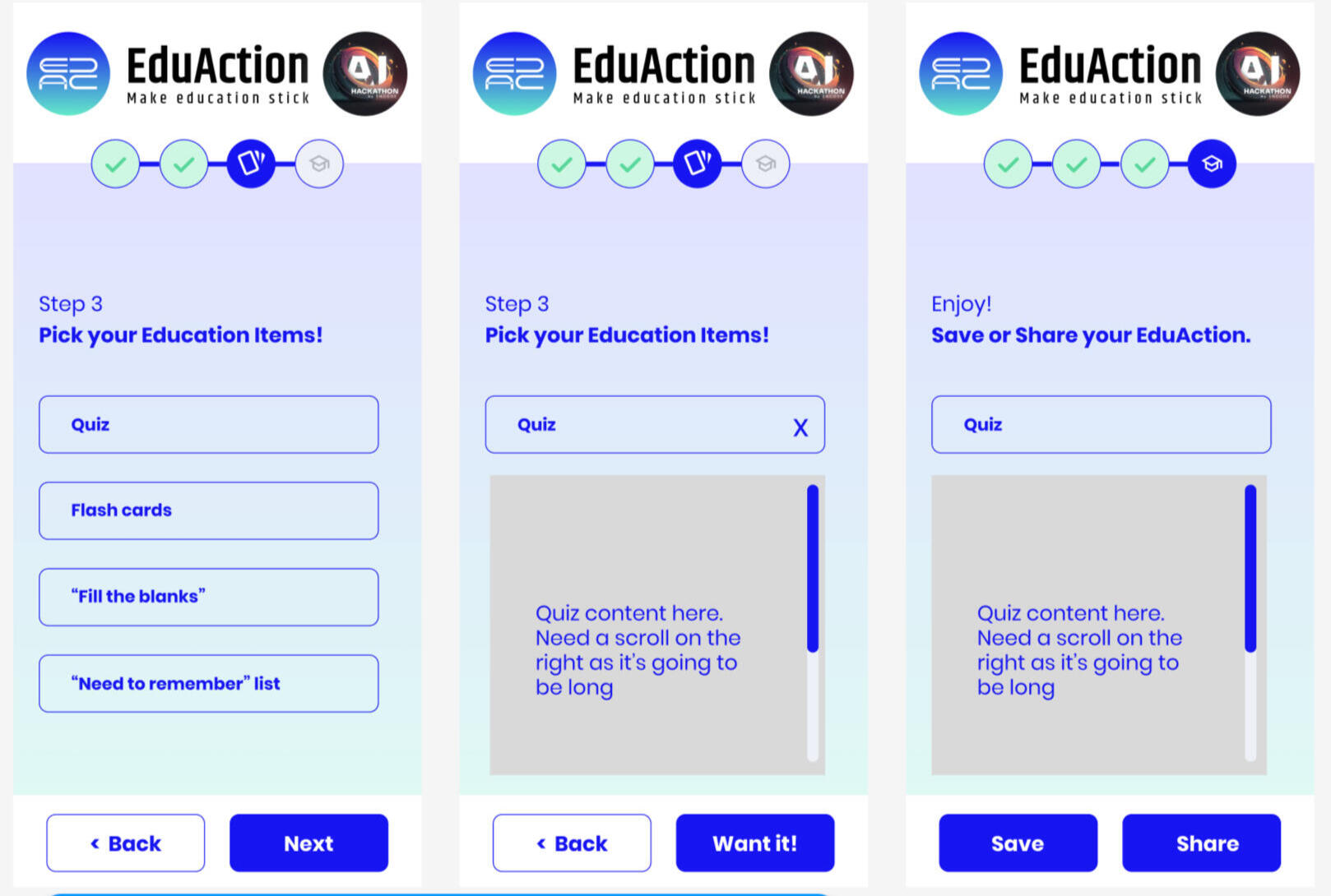 Problem: Students receive online lectures but lack supplementary training materials.Solution: Utilizing AI to generate training materials from online lectures.Action: We developed an AI application that converts YouTube lectures into flashcards and quizzes.