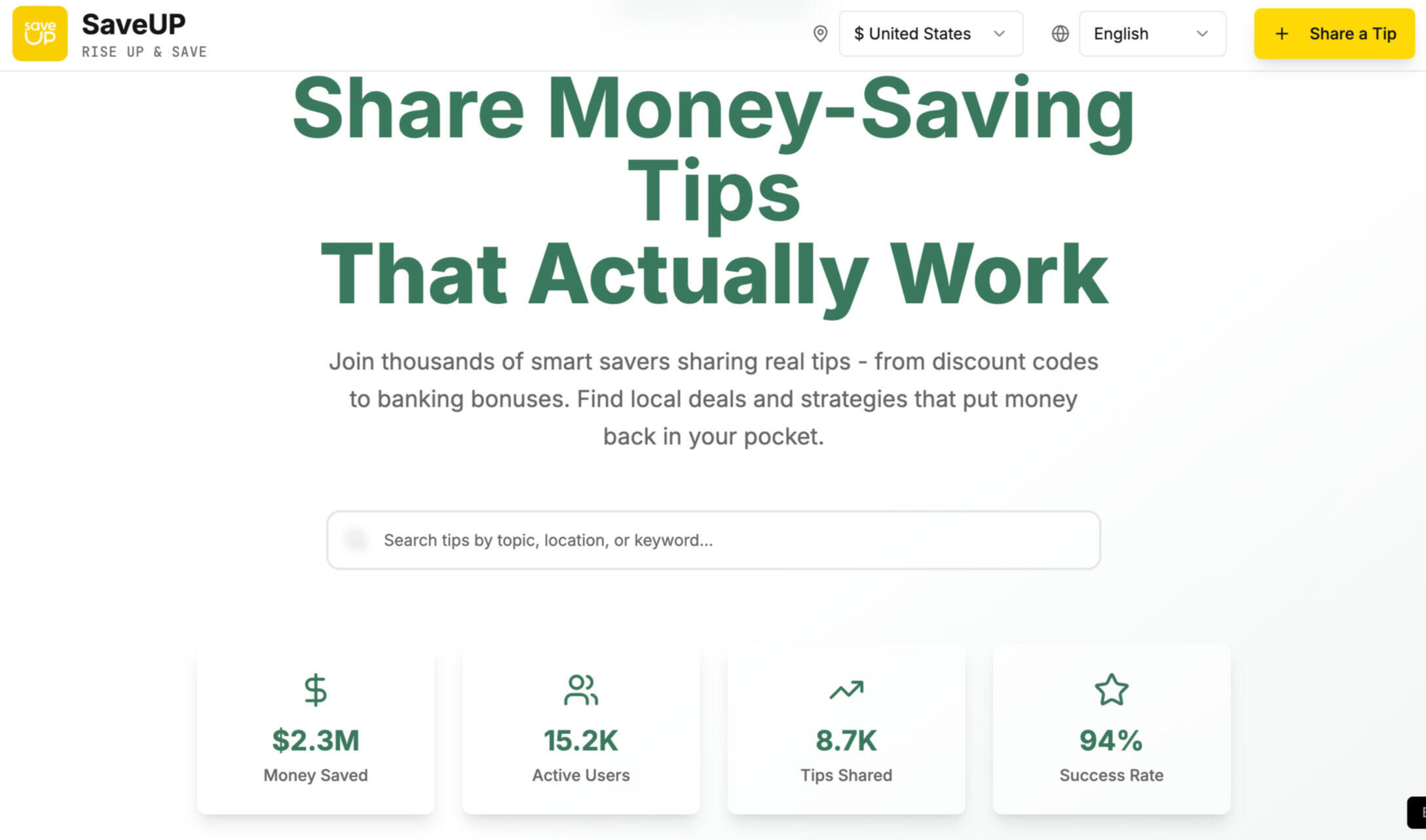 Problem: Rising inflation in the US, UK, and EU has increased public interest in reducing spending.Solution: An application that aggregates and categorizes saving tips for easy access.Action: Using Lovable, I developed a portal in 6 languages, for 6 countries, across 6 categories.